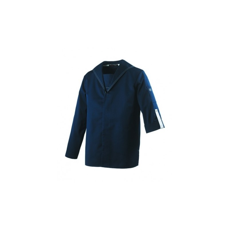Découvrez la veste de cuisine modèle Bato de Robur. C'est une veste unique à destination des métiers de bouche pour la poissonnerie ou encore de sushi. Le col vareuse est assez unique et propose un style hors du commun pour les professionnels de la restauration. Les manches sont retroussables avec bouton-pression.